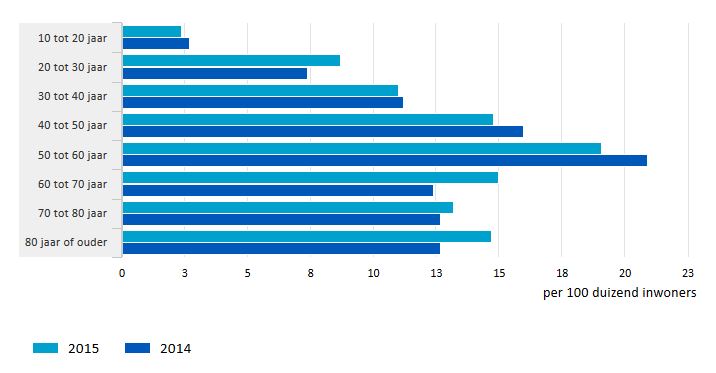Het aantal zelfdodingen in Nederland is in 2015 naar een recordhoogte gestegen. In totaal maakten 1.871 een eind aan hun leven, zo blijkt uit cijfers van het Centraal Bureau voor de Statistiek (CBS). In de praktijk komt dat aantal neer op een gemiddelde van vijf zelfdodingen per dag. Er waren in totaal dertig meer zelfdodingen dan in 2014. In vergelijking met enkele jaren geleden is de stijging echter sterker en lijkt er sprake te zijn van een stijgende trend. Vooral onder mannen in de twintig en boven de zestig jaar vond een sterke groei in zelfdodingen plaats. In de totale leeftijdsgroep tussen de twintig en veertig was zelfdoding afgelopen jaar zelfs de belangrijkste doodsoorzaak.