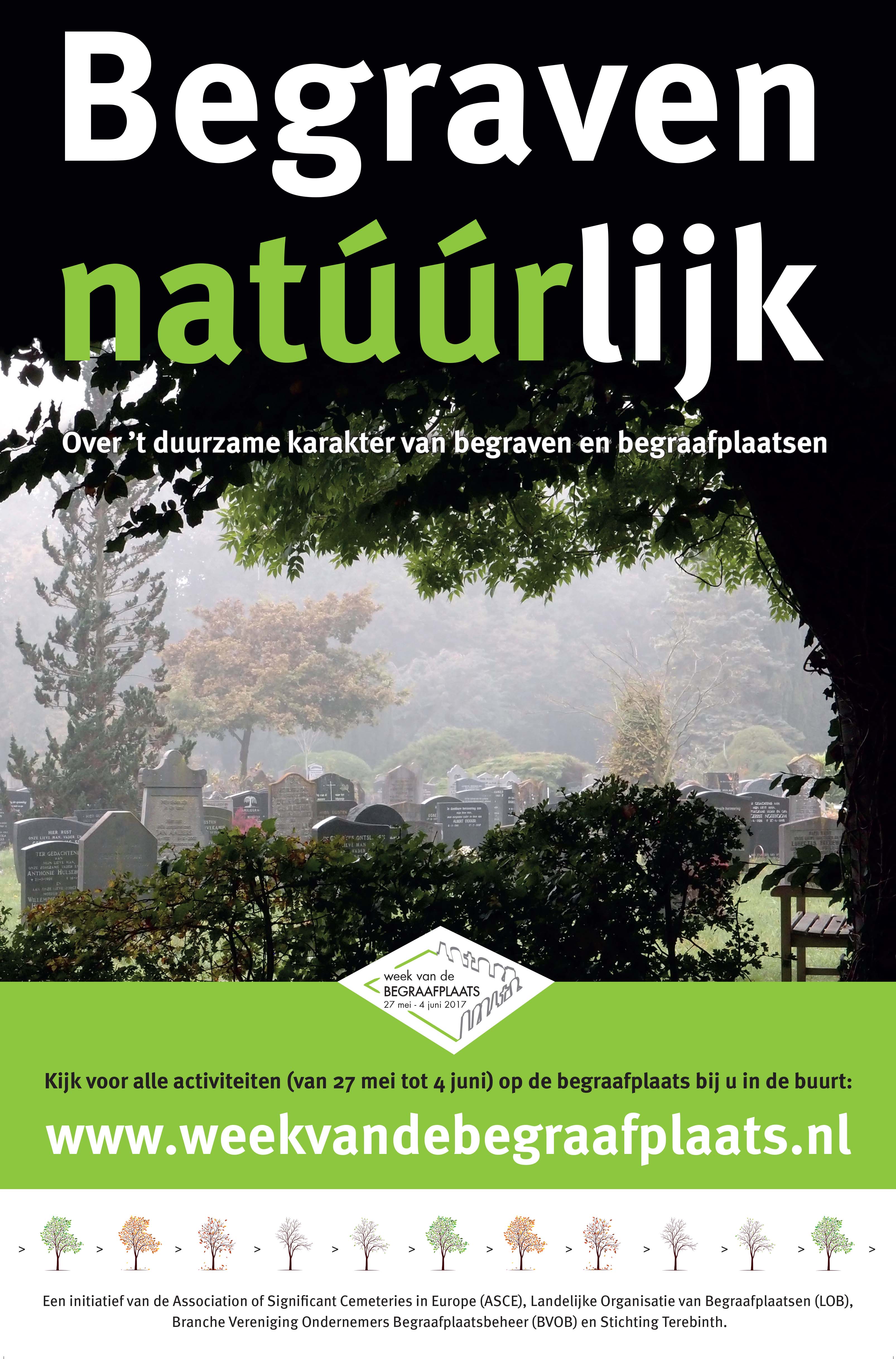 Van 27 tot en met 4 juni 2017 vindt voor de vierde maal de Week van de Begraafplaats plaats. Met het overkoepelende thema ‘duurzaamheid’ hoopt medeorganisator Landelijke Organisatie van Begraafplaatsen (LOB) het groene karakter van begraven te onderstrepen richting de consument, vertelt consulent Bartho Hendriksen namens de organisatie: “Nu cremeren en natuurbegraven steeds populairder worden, is het voor beheerders belangrijk te laten zien dat ook traditionele begraafplaatsen duurzaam zijn. Dat etiket is nu vooral aan natuurbegraafplaatsen gaan kleven, terwijl de meeste traditionele begraafplaatsen gewoon in mooie, natuurrijke gebieden liggen. Dat feit benadrukken zie ik overigens niet als concurrentie tussen de twee. Er doet ook een zestal natuurbegraafplaatsen mee aan de Week van de Begraafplaats.”