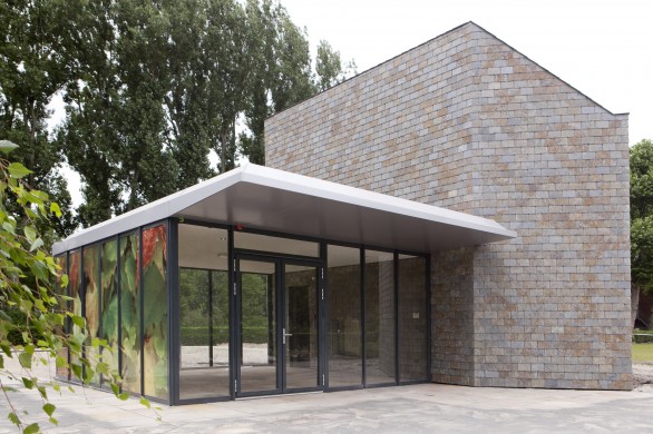 Het is een elegant paviljoentje bestaande uit een meerhoekig gebouw bekleed met leien en een transparante voorhal van 6 x 6 m. In de meerhoekige ruimte zijn de oven, de filterinstallatie en andere benodigde techniek ondergebracht. De voorhal is van glas met op een van de wanden een gekleurde print van klimopbladeren. Met gesloten gordijnen ontstaat een intieme privé ruimte. Met open gordijnen is de laatste weg van de overledene door een grotere groep bij te wonen.
