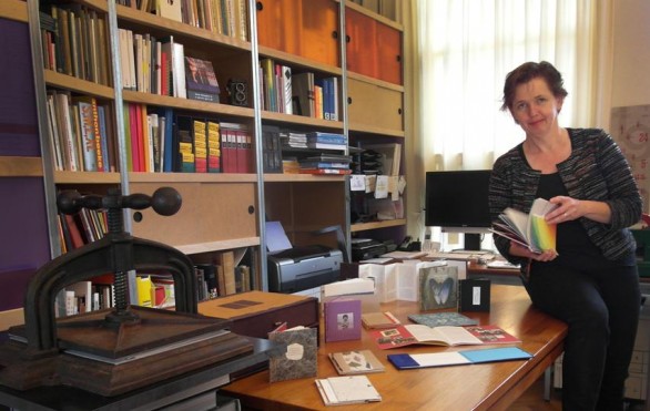 Jannie de Groot (1962) volgde de Kunstacademie in Den Haag, afdeling Grafische- en typografische vormgeving, en werkte voor uitgeverijen en (semi-)overheidsinstellingen. ‘Maar op een gegeven moment merkte ik dat ik een kleinschaliger aanpak interessanter vond, meer één-op-één contact met opdrachtgevers wilde hebben en ook een meer ambachtelijke aanpak ambieerde.’ Een opleiding Handboekbinden werd het en een verdieping in haar oude specialisatie, de (boek)typografie.