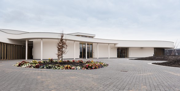 Het crematorium ziet er aan de buitenkant door de ronde vormen en belijning onalledaags uit. Binnen is het niet somber maar juist kleurrijk en huiselijk. Ook valt door de grote ramen veel daglicht binnen. Het gebouw is ruim opgezet en beschikt onder andere over een intieme familiekamer voor afscheid in kleine kring en een verzorgingsruimte die zo is ingericht dat nabestaanden aanwezig kunnen zijn bij de laatste verzorging en als ze dat willen ook kunnen helpen. Nabestaanden begeleiden steeds vaker de overledene tot in de crematieruimte. Nieuw is hier een afstandsbediening die aanwezigen kunnen gebruiken om zelf het crematieproces in gang te zetten.
