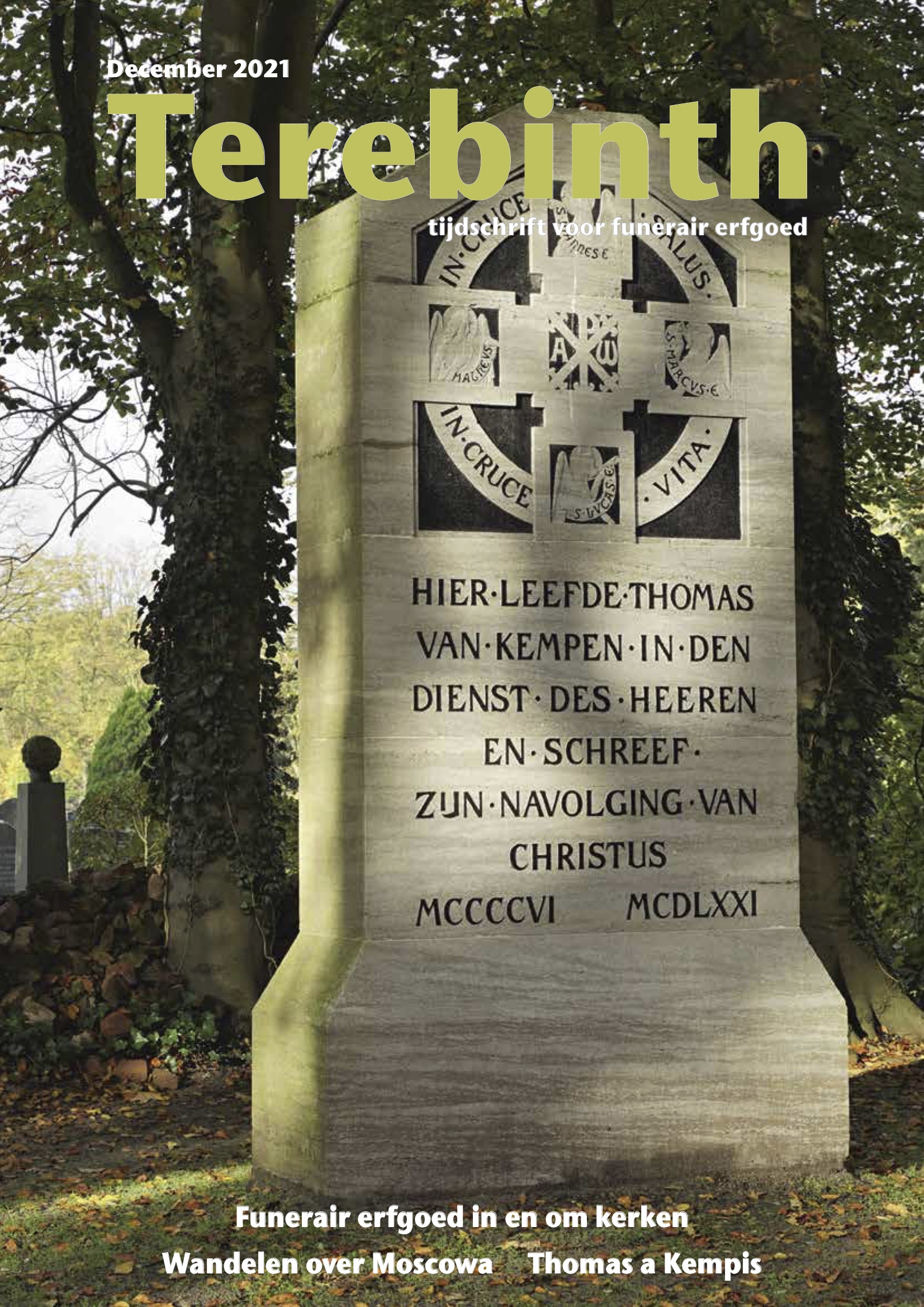 Op het omslag de gedenksteen voor Thomas a Kempis op begraafplaats Bergklooster in Zwolle , naar ontwerp van Pierre Cuypers. Foto: Bert Pierik.