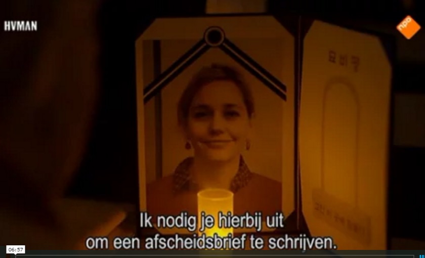 In Zuid-Korea heeft het gewoeker met de uren zelfs een naam: palli-palli. Net als bij ons dien je als mens vooral productief te zijn en niet te lanterfanten. Maar volgens therapeut Kiho Kim kun je de kunst van het leven pas beheersen, als je er eerst afscheid van neemt. Hij geeft een ‘cursus sterven’, die in Zuid-Korea vaak wordt voorgeschreven aan suïcidale mensen. Paradoxaal genoeg juist om hen van hun zelfmoordplannen af te houden. In het tv-programma gaat Stine Jensen de confrontatie met haar grootste angst aan en laat zich opsluiten in een kist. Een gedwongen afscheid van haar dochtertje is het allerergste dat ze zich kan voorstellen. Bekijk hier het fragment.