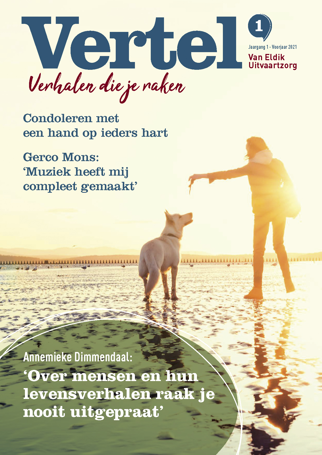 Vertel, is de titel van het magazine dat u vandaag op de deurmat of in de brievenbus vindt. Een uitgave van Van Eldik Uitvaartzorg. “In Vertel, – ja, met een komma – geven we de ruimte aan verhalen”, vertelt Petra van Eldik. “Omdat verhalen van mensen blijven boeien. Dat inspireerde ons om verhalen de ruimte te bieden in de vorm van ons magazine Vertel, met verhalen van mensen uit de regio.”
