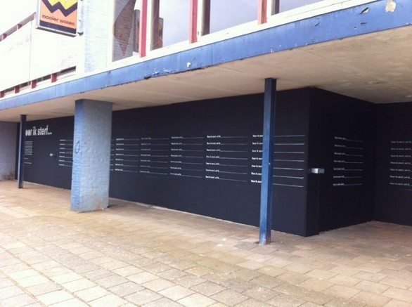 Over de houten platen die vol stonden met graffiti is krijtverf geschilderd. Op de eerste plaat wordt de uitleg gegeven. Inwoners van Drachten kunnen hun levenswens in een zin opschrijven. De Laatste Eer Drachten introduceert binnenkort een nieuw online tool ‘levenswens.nl’.